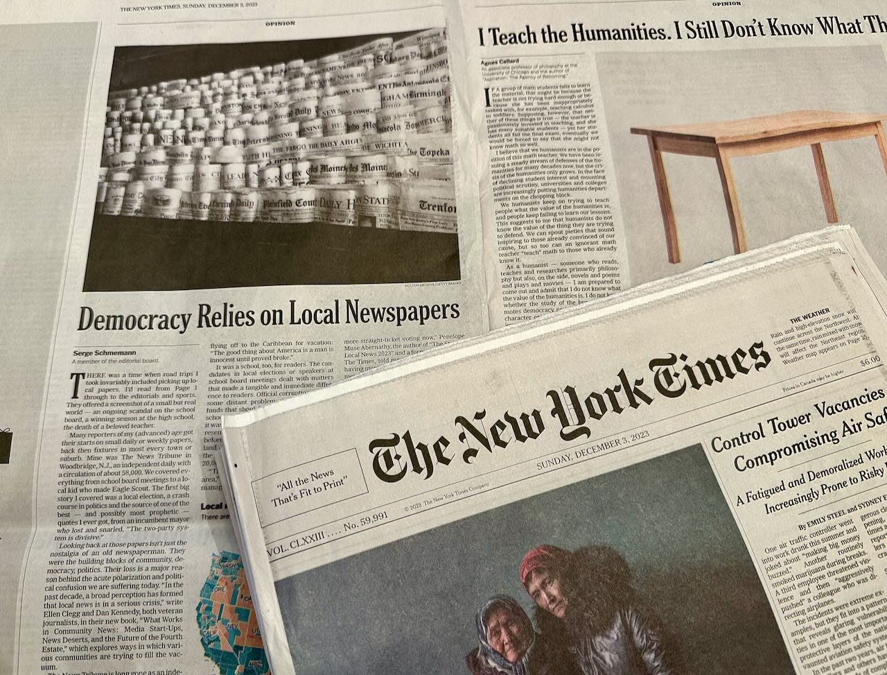 Great to see Serge Schmemann’s recent New York Times opinion piece about local news (free link) pop up in today’s print edition. Schmemann interviewed Ellen Clegg and me and cites our forthcoming book, “What Works in Community News.”