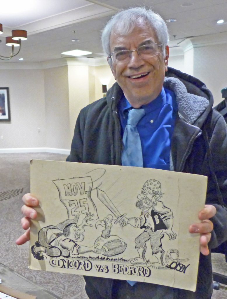 Mike Rosenberg with a cartoon by local sports artist Dave Olsen. 2018 photo by Julie McCay Turner is used with permission.